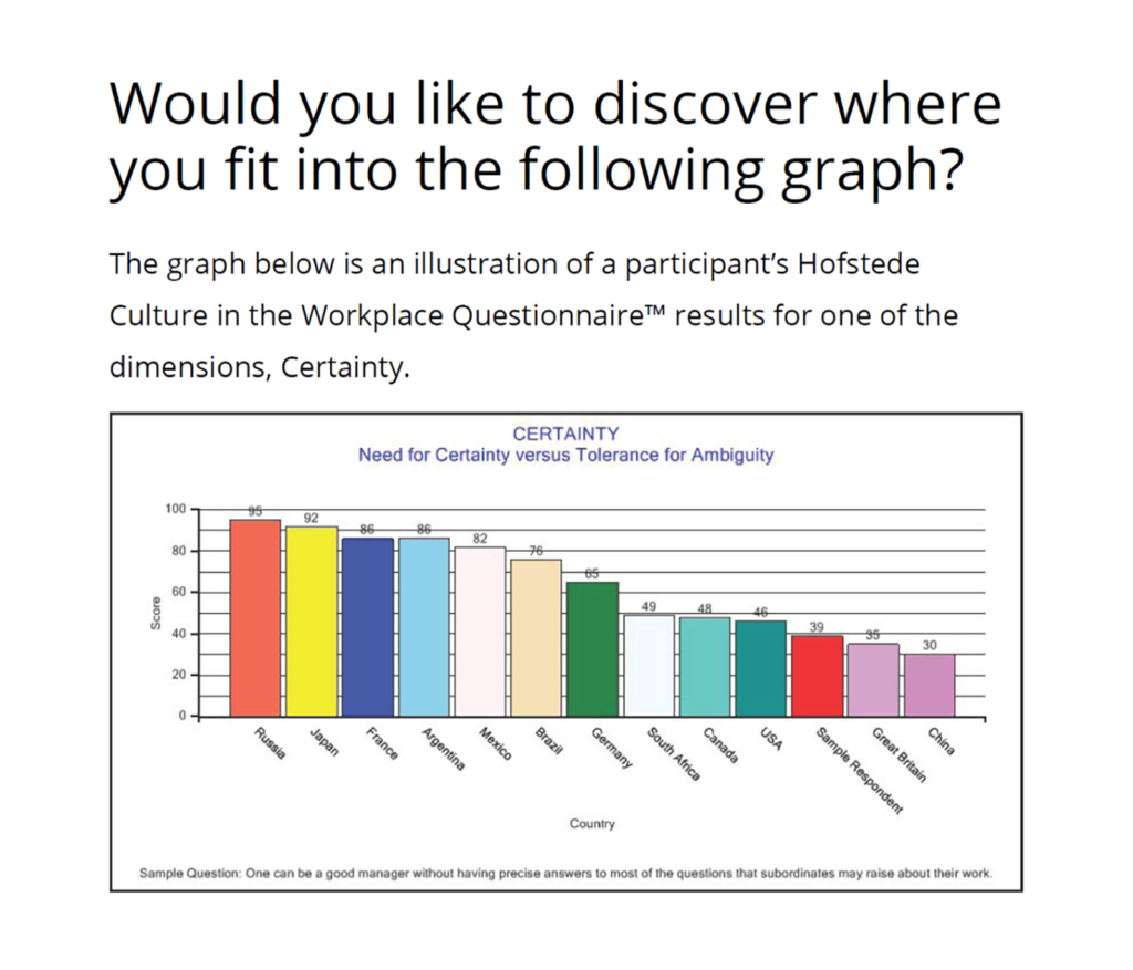 一部のディメンションについては、ビジネスの現場で使いやすいよう、Hofstedeの原書とは異なる表現を用いております。研究目的でホフステードのディメンションを活用する際は原書をご参照ください。